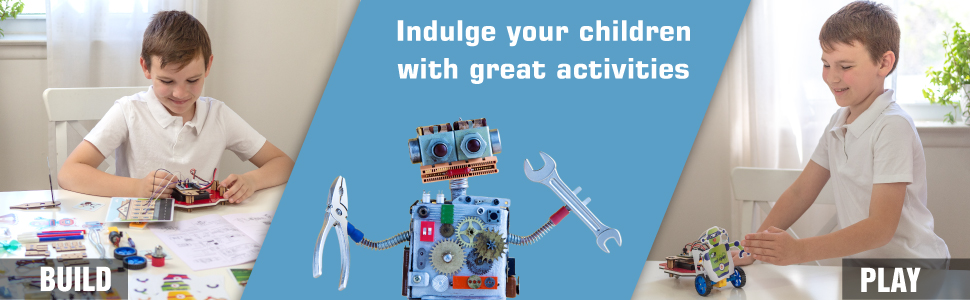 - u2b50 u3010KIDS SCIENCE EXPERIMENT KITSu3011 : Kids can create electronic builds with their own hands. using the motors. wires. sensors and all parts included. In the process of assembling building set. children can experience the joy and accomplishment brought by conceptual learning. which will help the children’s creative thinking ability. Great robot kit toys encourage your kids to learn through games. many possibilities are waiting for our little builders!