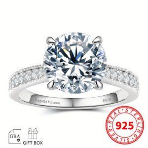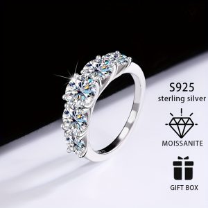 925 Silver Moissanite Round 4.0mm Full Body Ring 15-17 Pieces Of 5ct Stones Ladies Wedding Ring Engagement Ring About 4.5g Anniversary Eternal Commitment Simple Style Party Gift
