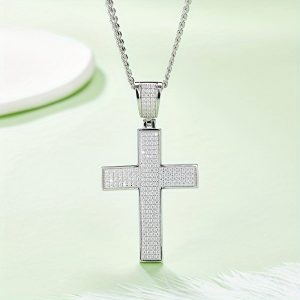 925 Silver Sparkling Moissanite Necklace Jewelry Accessories Ladies Fashion Necklace Cross Element Design Exquisite Original Design Charming Wedding Party Perfect For Everyday Occasions, Mardi Gras Day And Any Season Halloween Gift Christmas Gift