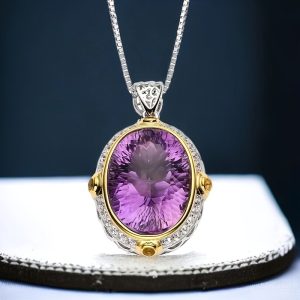 Noble, Elegant, Niche Design Oval Natural Amethyst Pendant, S925 Silver Exquisite Clavicle Chain