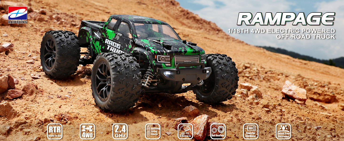 - Powered with superb and fast brushed RC 380 motor in unceasingly efficient drivetrain . this 4WD rc trucks Rampage speeds topping to 36 KPH. which finds operators in marvelous enjoyment.