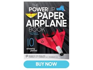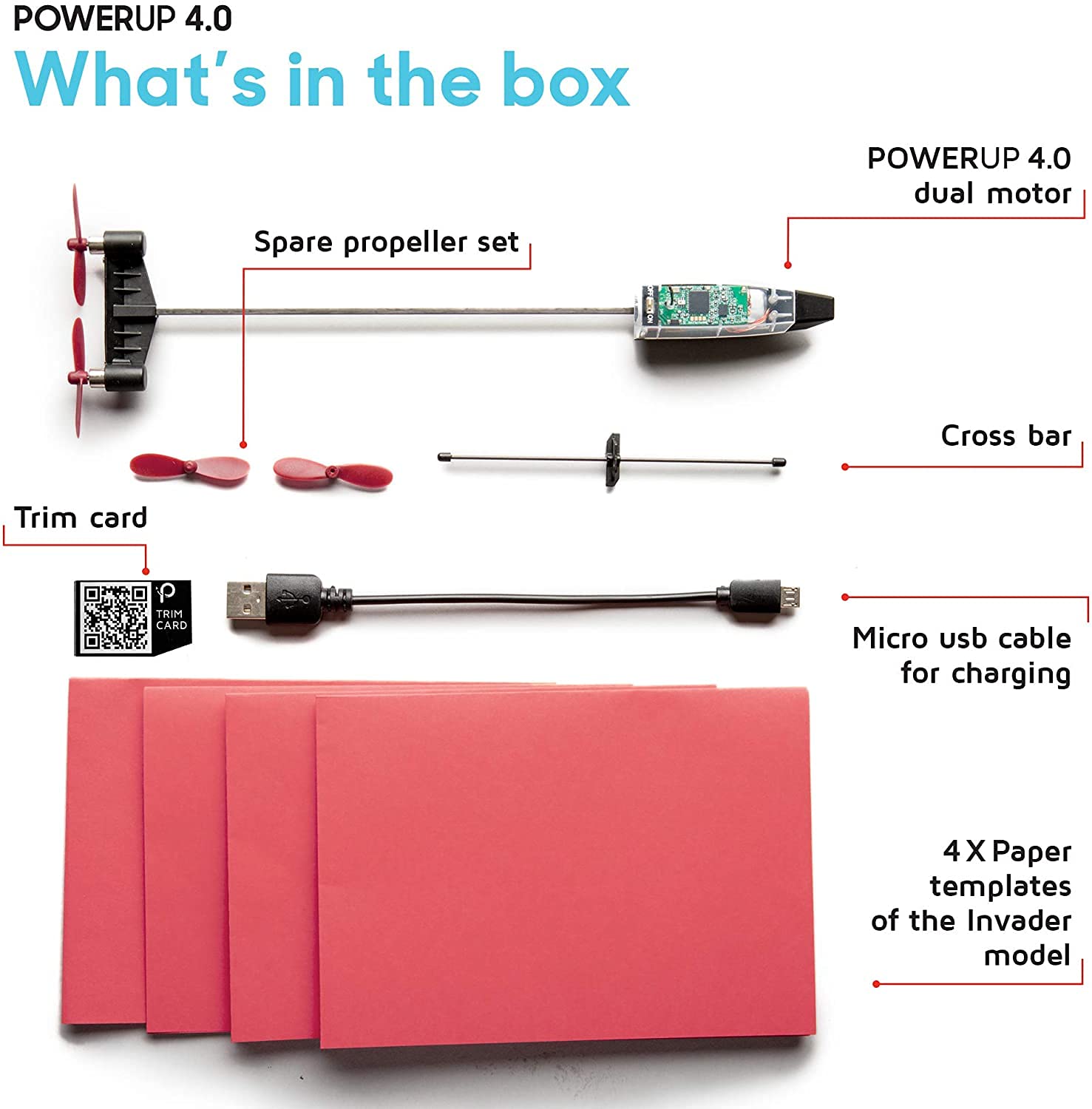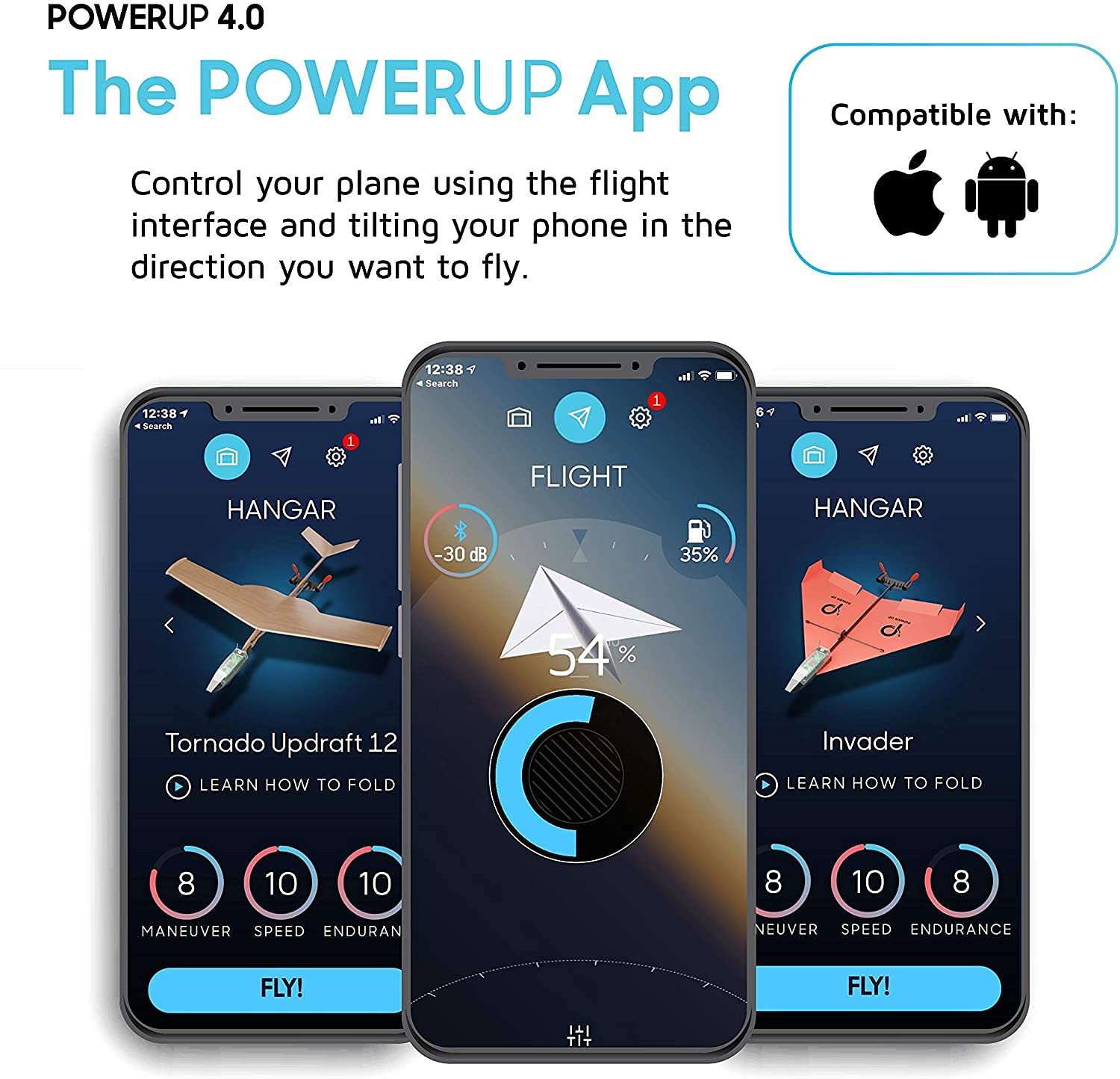 - DURABLE – A near indestructible heavy duty carbon fiber body includes a nylon reinforced nose and motor mount. The POWERUP 4.0 paper airplane set is designed to withstand bumps. bangs. and even an unexpected crash. If your paper plane flies out of range. the onboard computer will safely land itself! Includes a one year warranty.