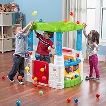 - KIDS PLAYHOUSE: Little ones will have a ball with this fun Step2 Kids Ball Pit Themed Playhouse! So many fun features both inside and out of the ball pit playhouse to discover cause and effect and build motor skills.