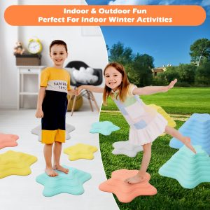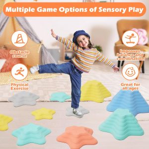 - Develop Balance & Coordination — Earling Balance Stepping Stones for Kids help your child build confidence in their balance and coordination. Each side of the kids stepping stones vary in steepness and difficulty. playing with the stepping stones kit helps them learn to determine distance and height.
