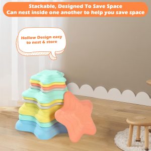 - Safe Anti-skidding Bottoms — Designed with rubber covered bottoms to prevent slippage. our stones are ideal for use on non-smooth surfaces like carpet or grass! And with a sturdy triangle design. you don’t have to worry about they will topple over when kids hop and play.