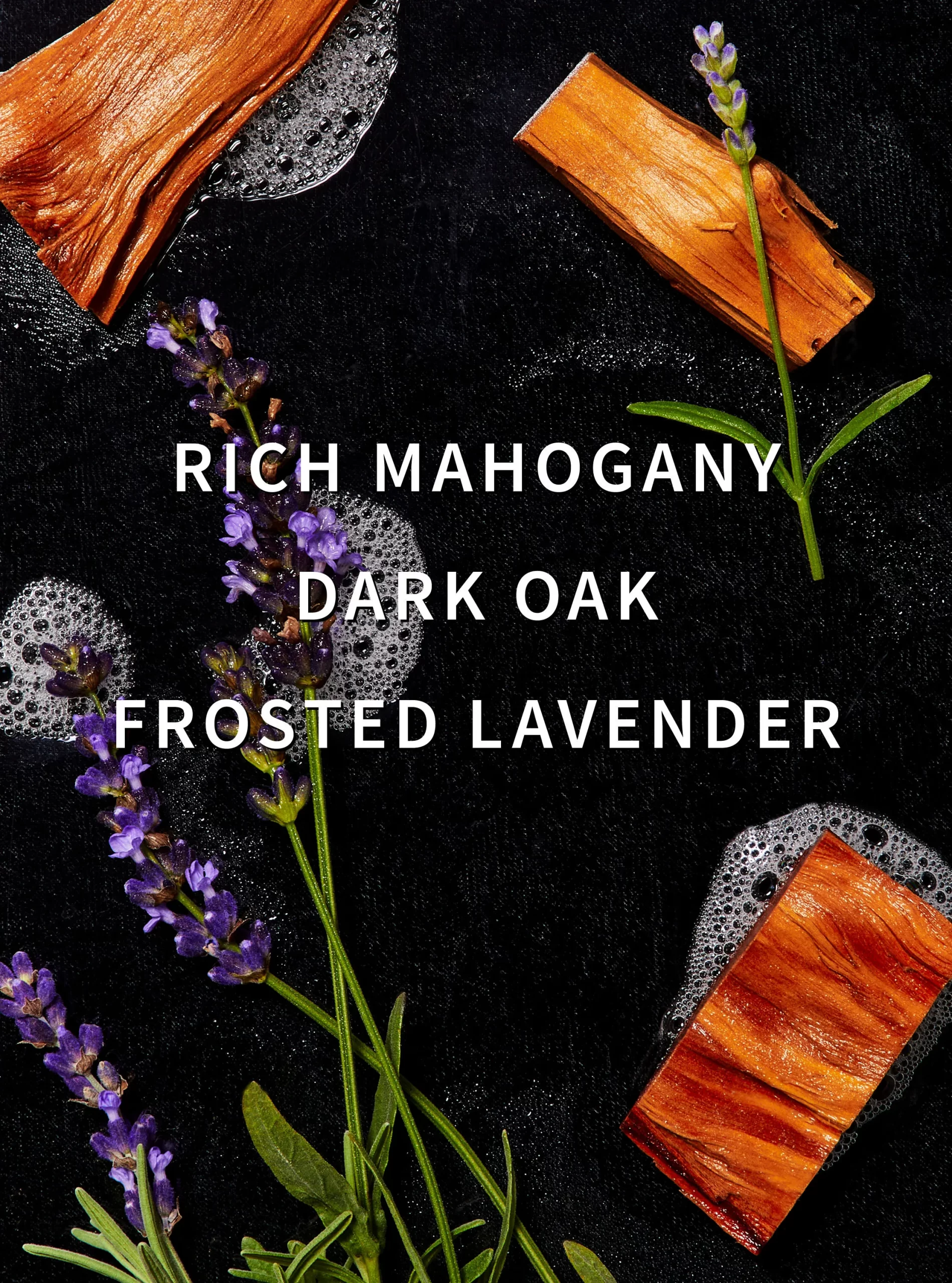 Fragrance notes: rich mahogany. dark oak and frosted lavender