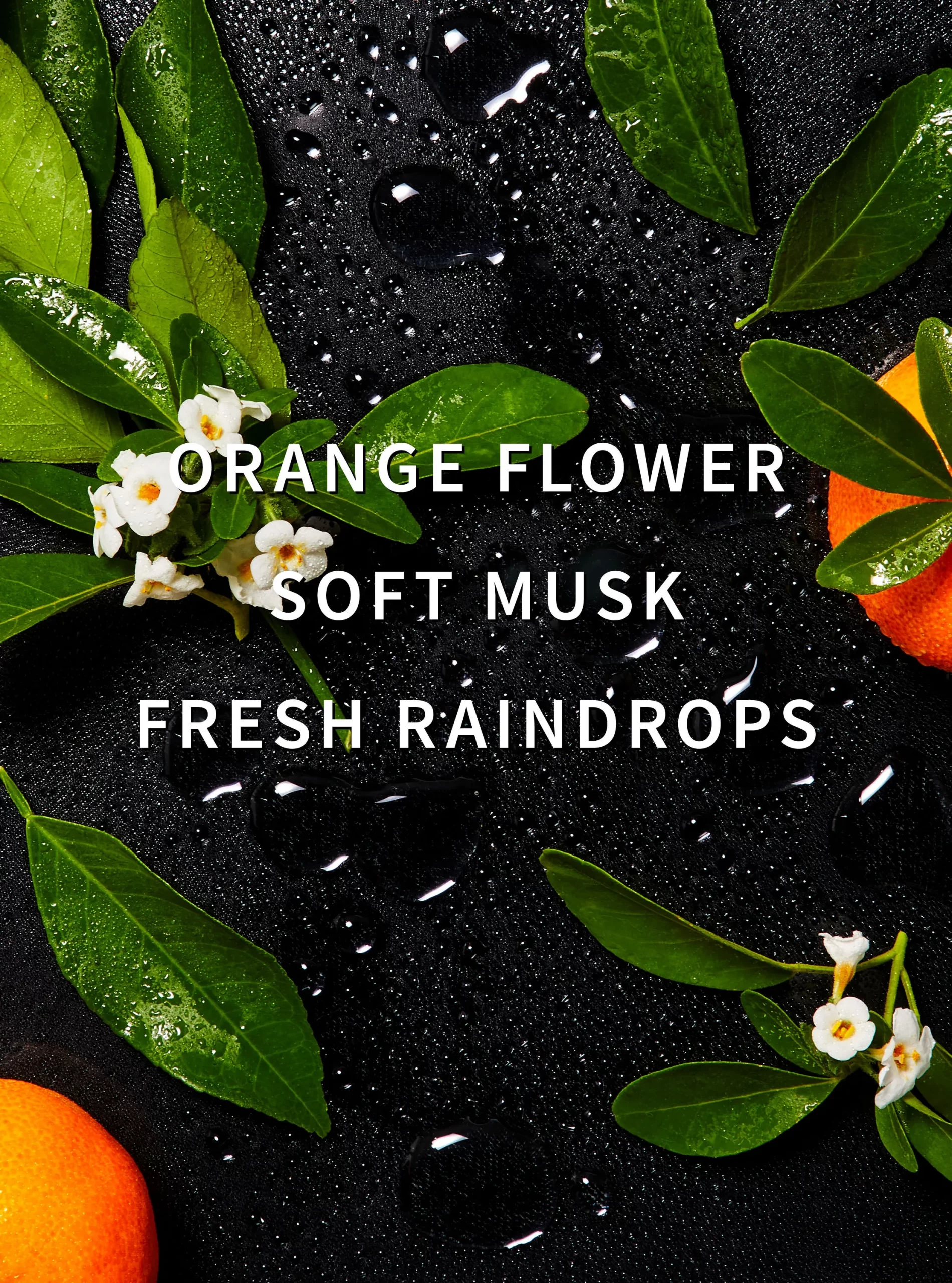 Fragrance notes: orange flower. soft musk and fresh raindrops