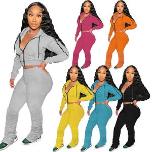 2piece Crop Hoodie Sports Sexy Soild Color Jogging Suit Women Custom Logo Blank Jogging Suit