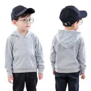 High Quality Boys Girls French Terry Blank Hoodies Custom Kids Sublimation Hoodies Without Strings